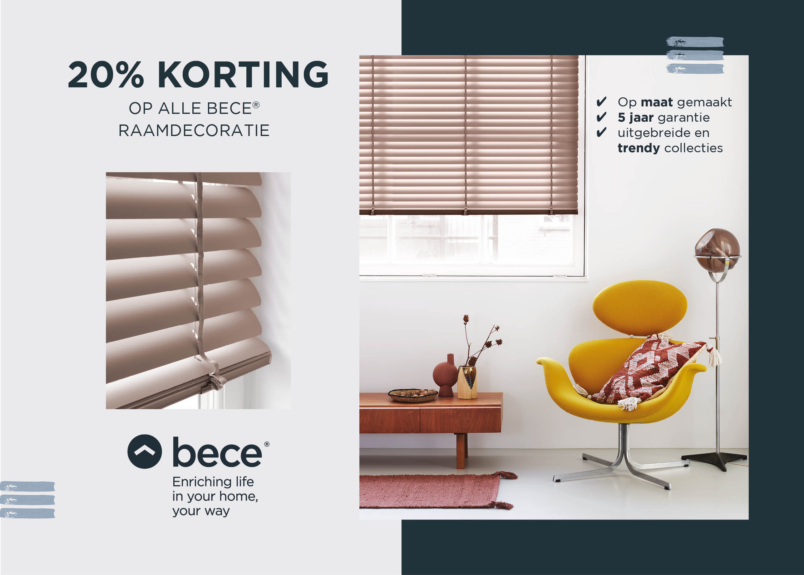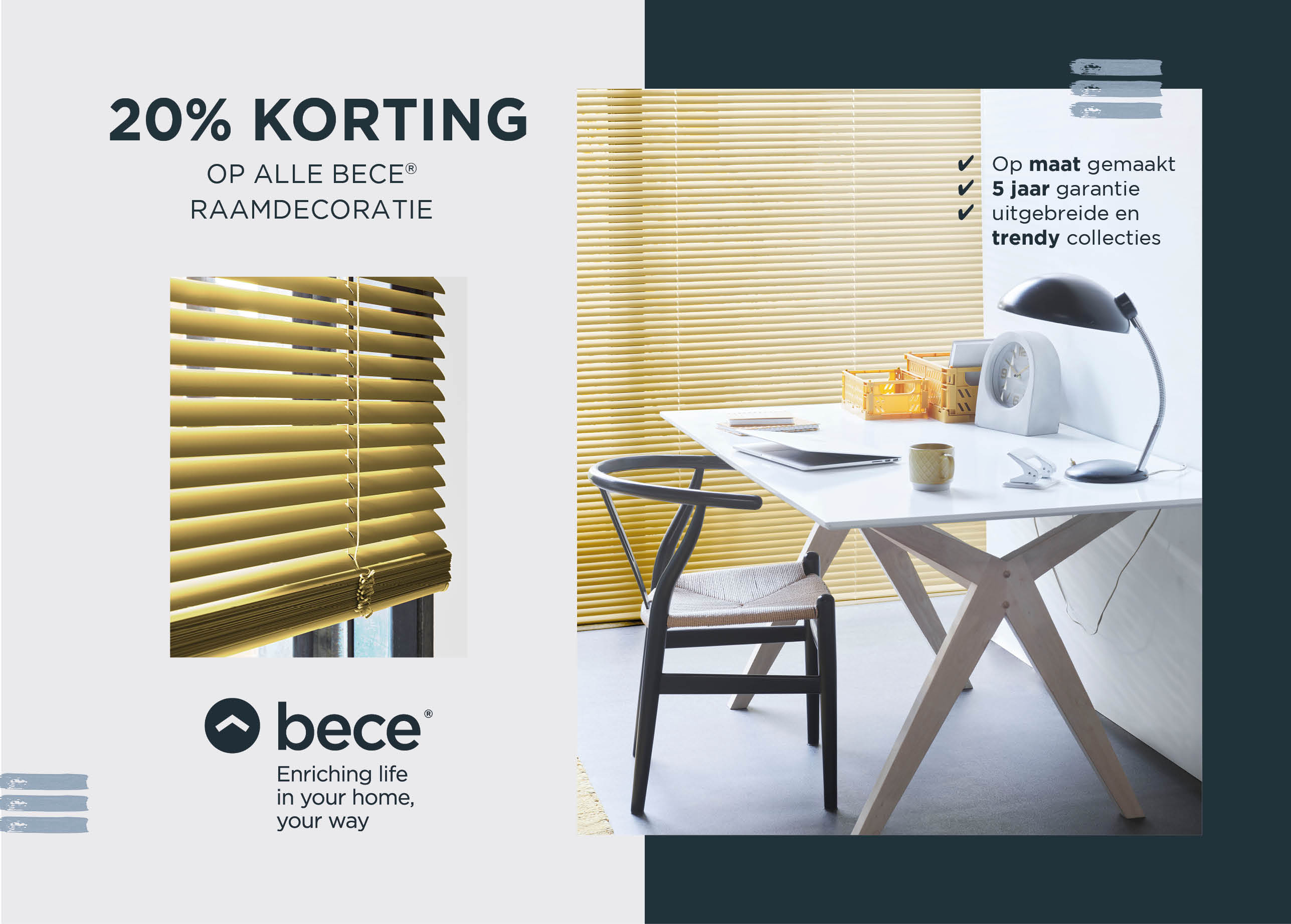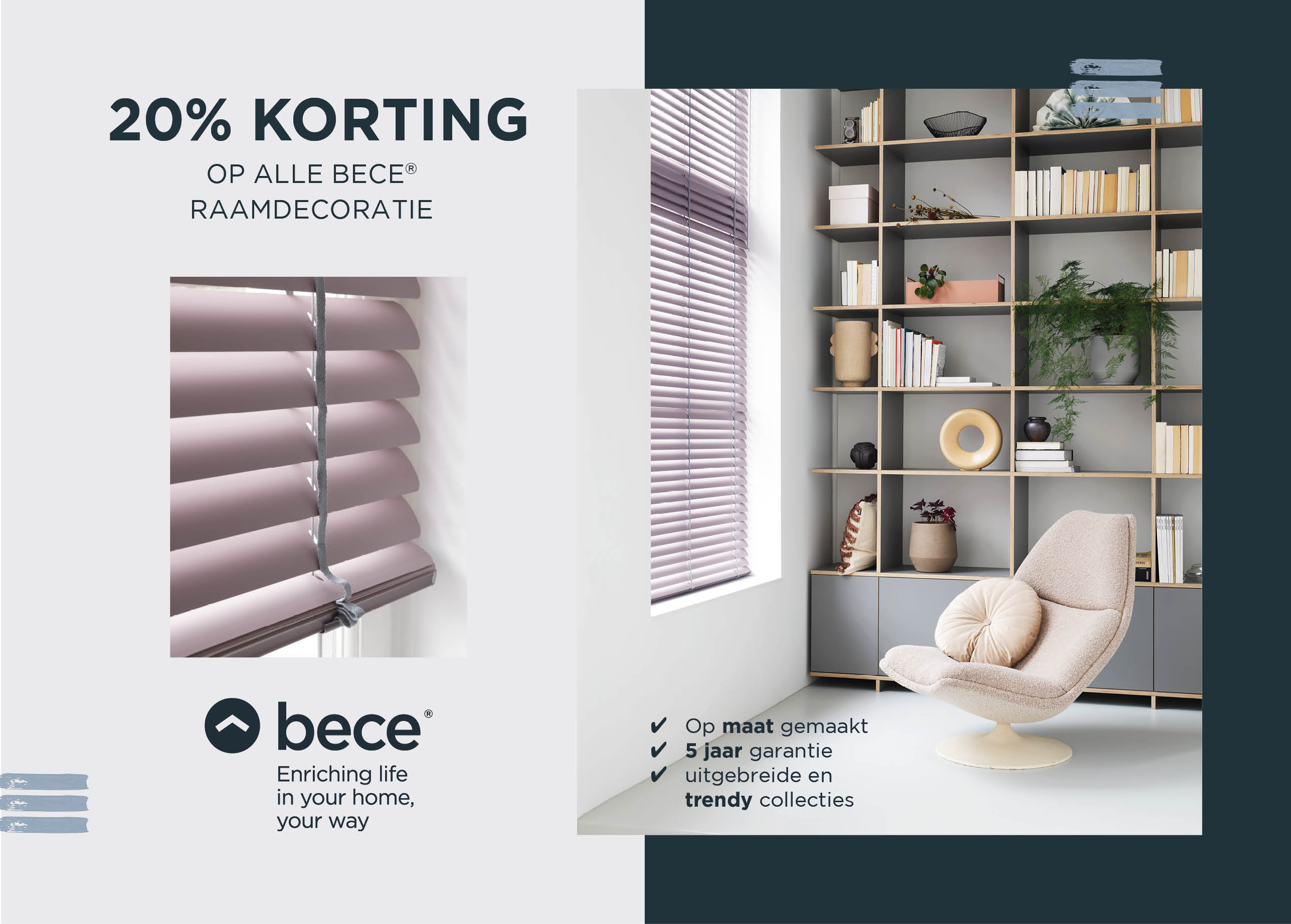 20% korting op bece® raamdecoratie - versie 3 (A5)