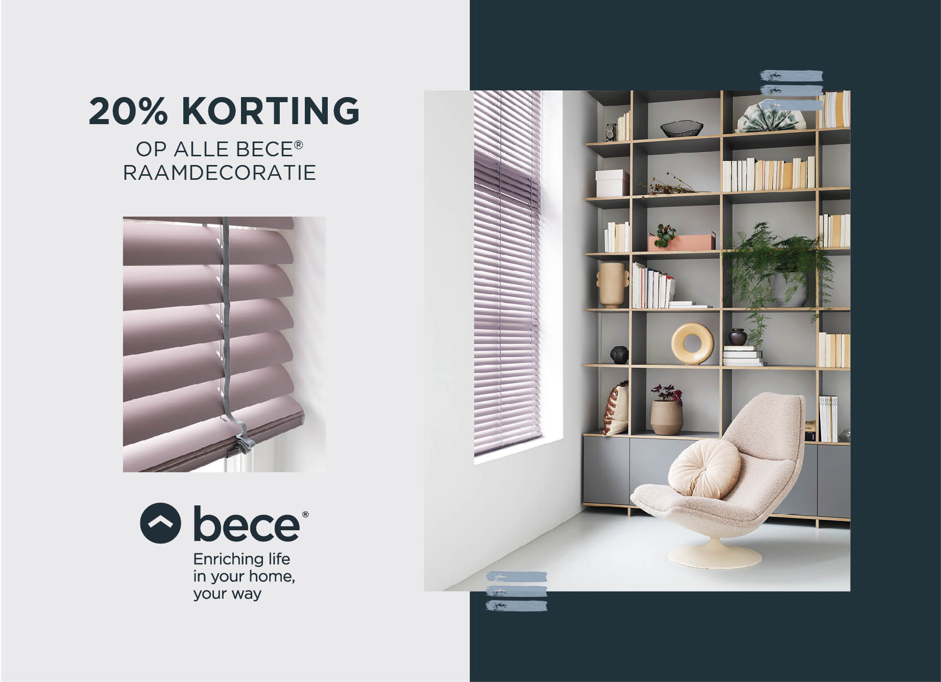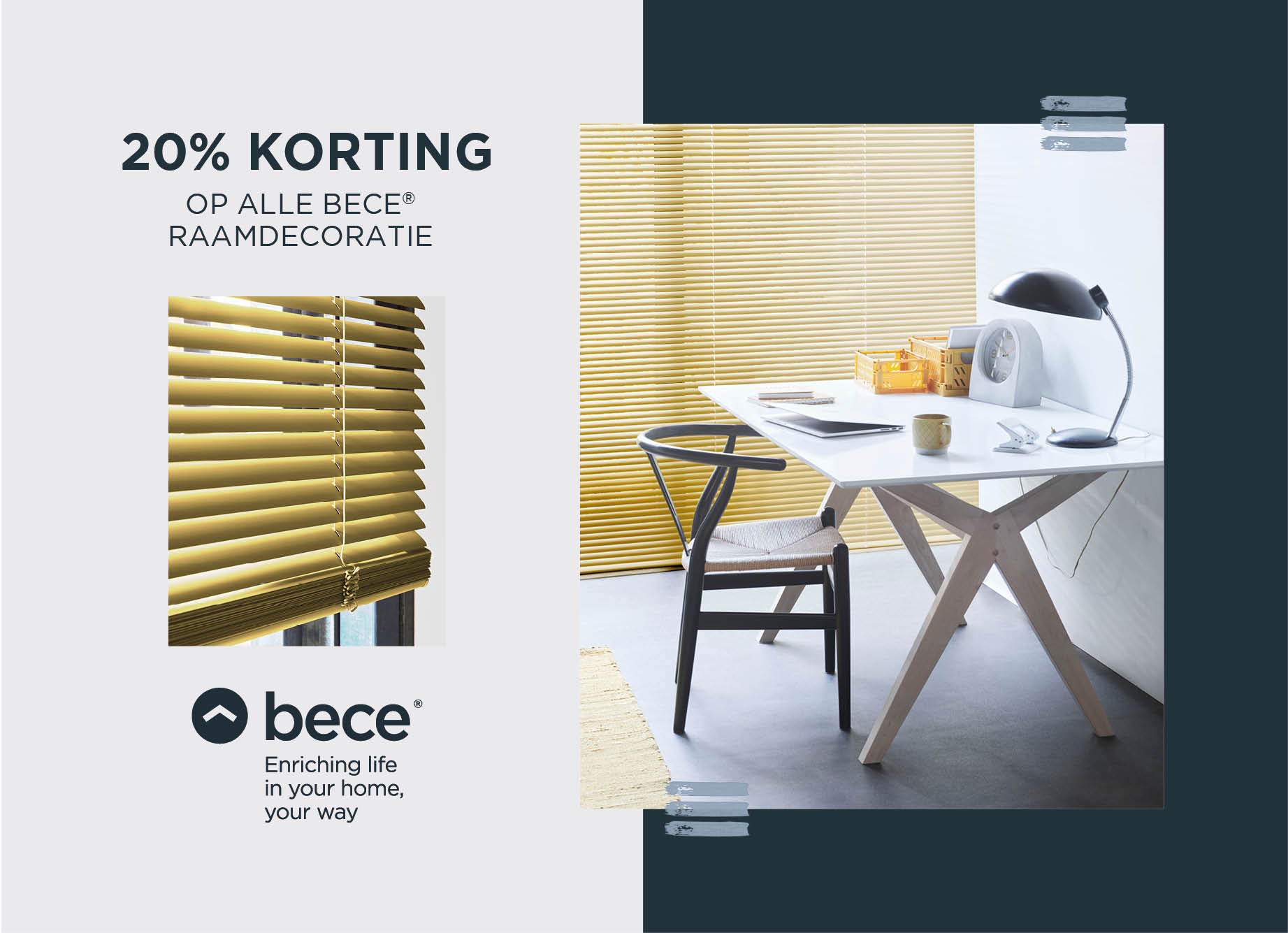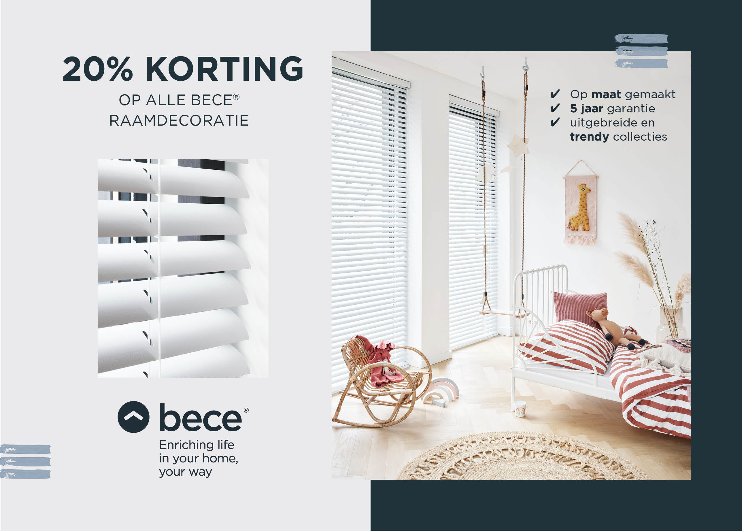 20% korting op bece® raamdecoratie - versie 3 (A5)
