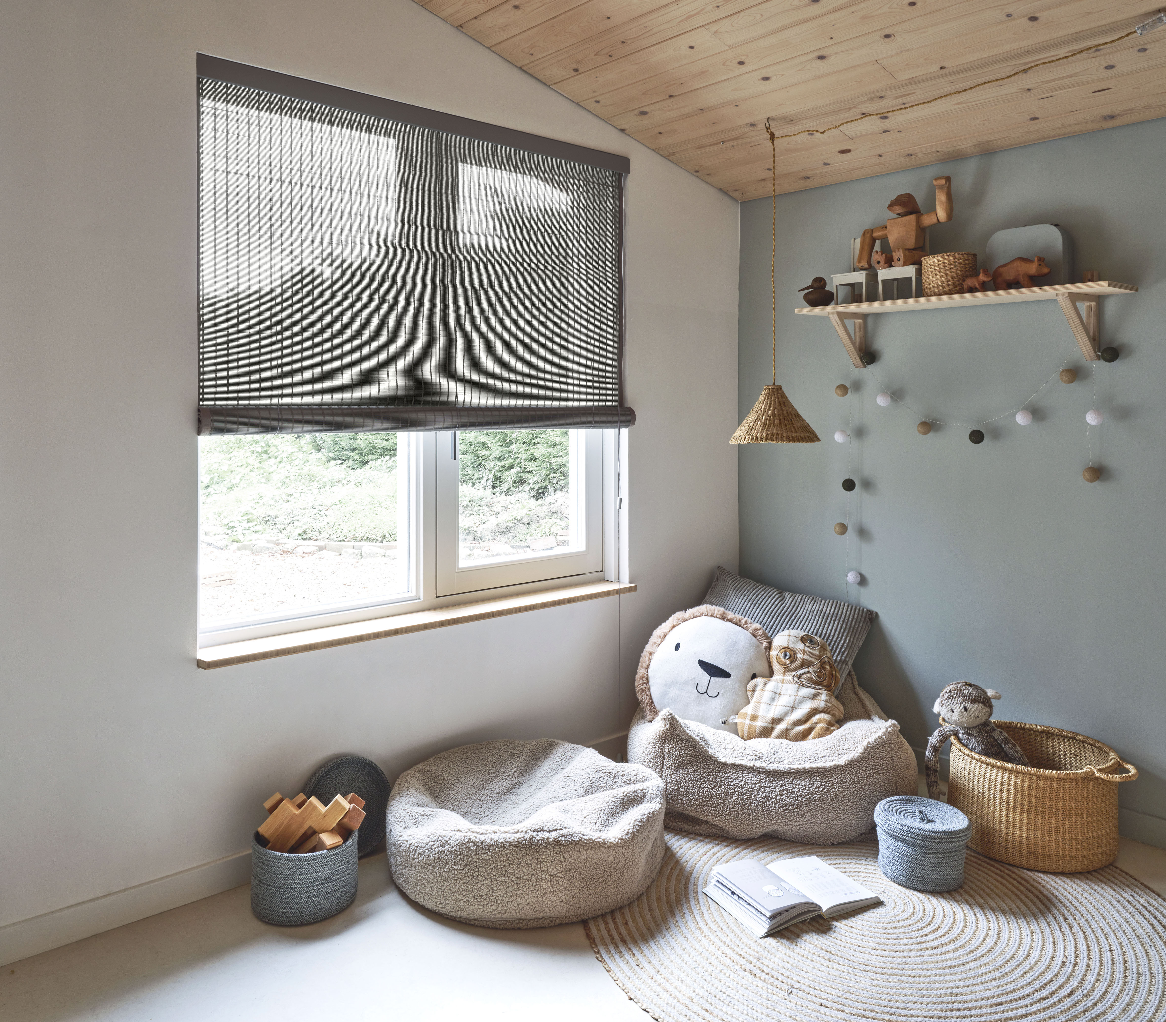 Geweven hout MORI Chalk 40800 vouwgordijn detail